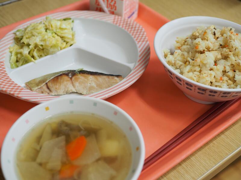 きょうは国産食材活用メニューということで、提供いただいた愛媛県産のタイが登場しています。愛媛県はタイの養殖(人が魚を育てること)に力を入れていて、生産量は全国でもトップクラスです。天然のタイにも負けないくらい、おいしく育てられています。