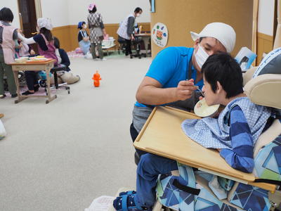 安心・安全な給食をめざしている本校では、摂食指導も肢体不自由特別支援学校の専門性の一つとして大切にしています。毎日の給食では、子どもたちが安心・安全に食べることにより、多様な感覚に働きかけることができ、食べる楽しみや喜び、満足感、情緒の安定等を育むことが期待できます。本日は、摂食指導委員会が中心となり、実技を行いながら、基礎的な学習会を開催しました。これからも、関係機関との連携・協力を得ながら一人一人の実態に合わせた摂食指導を心掛けていきたいと思います。