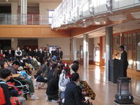 校長より、毛利元就の言葉「一年の計は春にあり、一月の計は朔(ついたち)にあり、一日の計 は鶏鳴(一番鶏が鳴く早朝)にあり。」を引用し、「今年一年で挑戦することをぜひ決めて取り組んでほしい。」とのお話がありました。